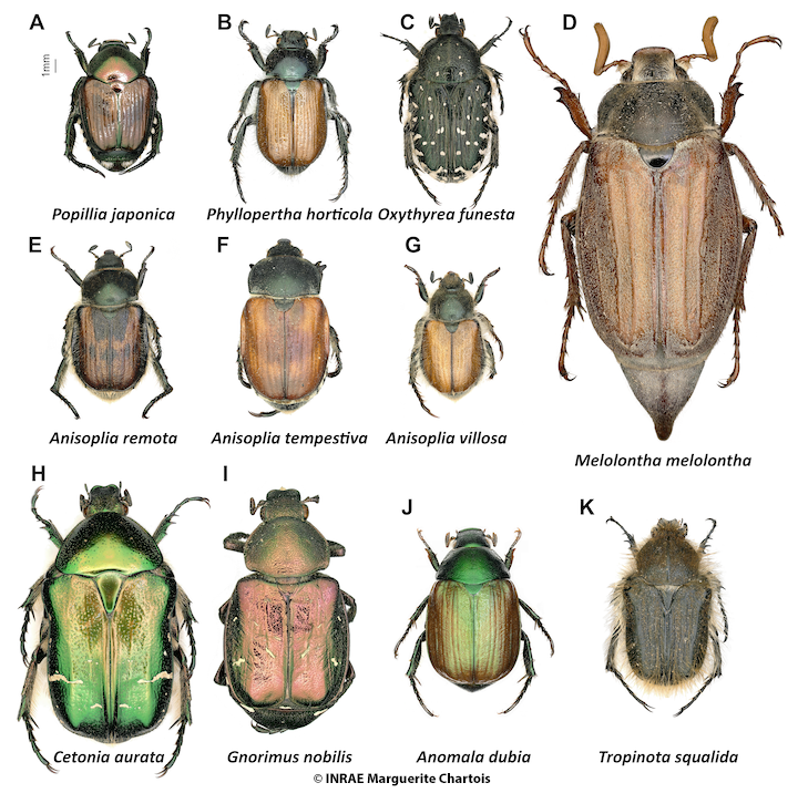 Cliquez sur le nom de chaque espèce dans la liste ci-dessous pour atteindre leurs critères de comparaison avec le Scarabée japonais :