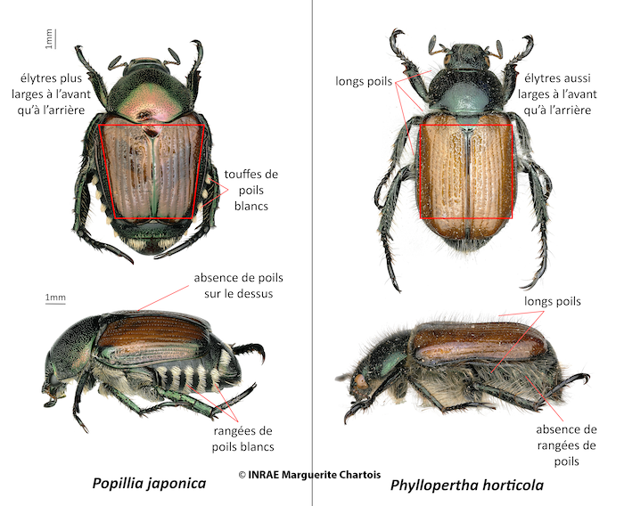 Comparaison des adultes du Scarabée japonais et de Phyllopertha horticola