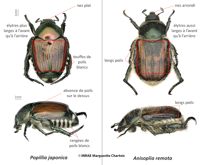 Comparaison des adultes du Scarabée japonais et de Anisoplia remota
