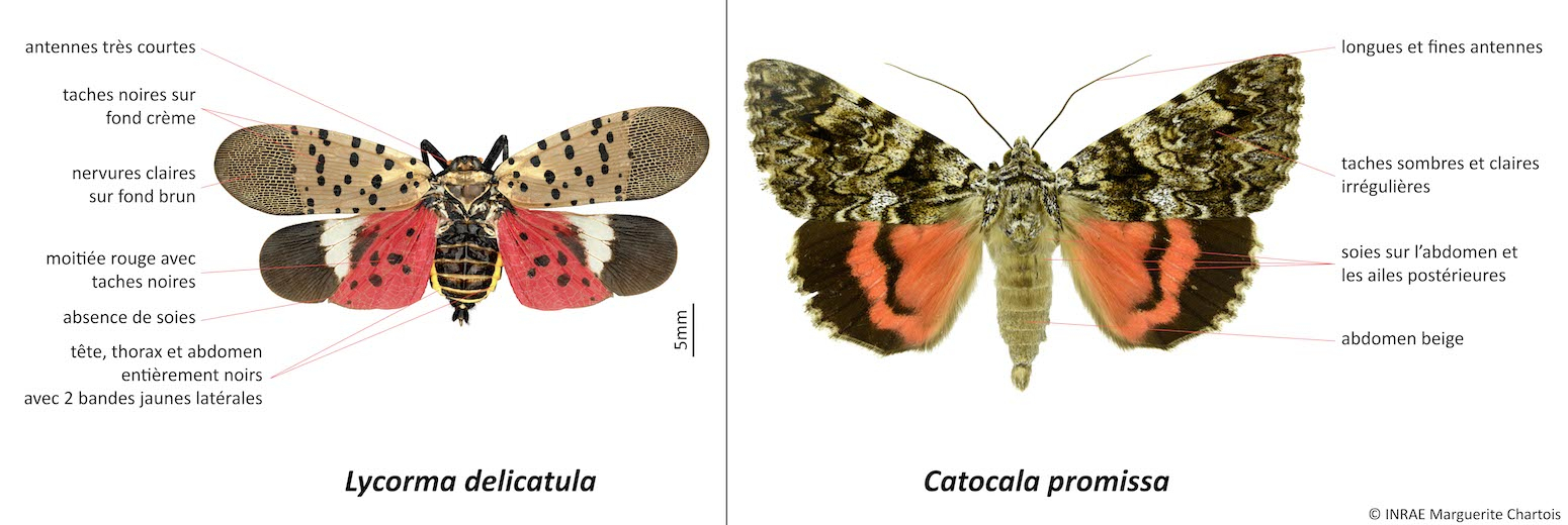 Comparaison des adultes du Fulgore tacheté et de Catocala promissa