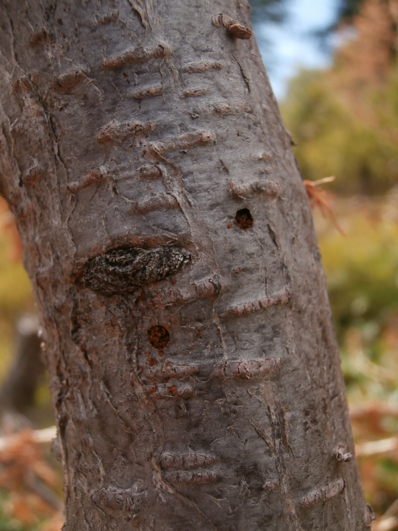 - Galeries de maturation observables sur les branches fines (3 à 6 cm).