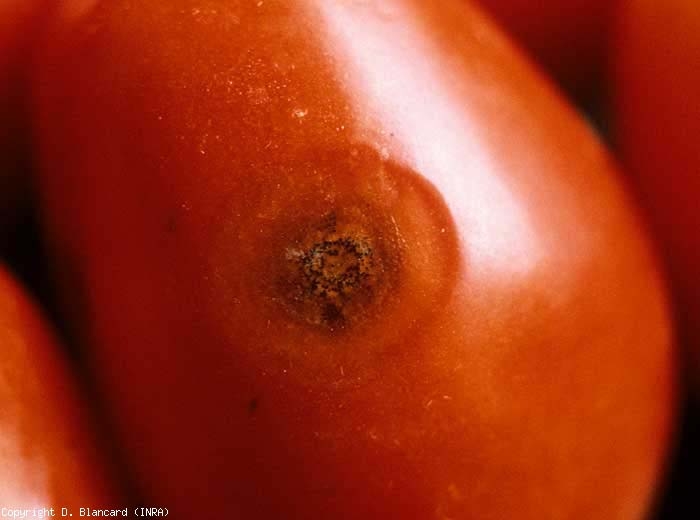 Plusieurs Colletotrichum peuvent être associés à l'anthracnose de la tomate dans le monde. C. coccodes, qui est l'espèce la plus fréquente sur fruits, a déjà été décrite précédemment sur racines, responsable de l'altération du cortex notamment (voir le chapitre Altérations des racines). D'autres espèces sont également observées sur des tomates présentant des symptômes d'anthracnose : C. gloeosporioides (Penz) Penz. & Sacc., C. dematium (Pers) Grove. L'anthracnose occasionne des pertes conséquentes dans de nombreuses zones de production. Ses dégâts se manifestent essentiellement sur les fruits matures produits en plein champ, et parfois en postrécolte. Cette maladie parasitaire est fréquente en France, aussi bien dans les cultures industrielles de tomate de plein champ récoltées mécaniquement que dans les jardins d'amateurs.