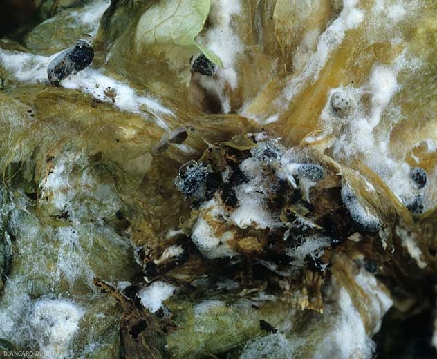 Quelle que soit la localisation de l'attaque, un mycélium plus ou moins cotonneux et blanc se forme sur certaines parties des tissus affectés (figures 3 et 4). On y observe des structures qui permettent de différencier ces deux Sclerotinia spp. :