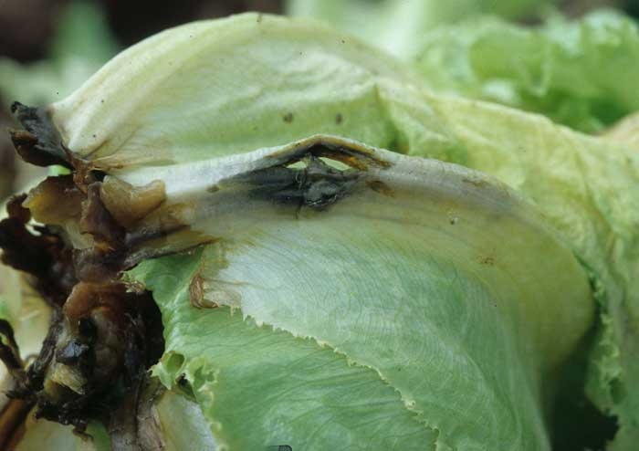 Des effondrements assez brusques de salades sont parfois observés à la suite de périodes pluvieuses ou dans des parcelles trop irriguées, à proximité de la récolte. Ils sont provoqués par la colonisation des tissus internes des salades par des bactéries très polyphages appartenant au genre Pectobacterium et, plus particulièrement, à l'espèce Pectobacterium carotovorum subsp. carotovorum.