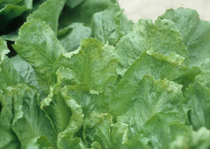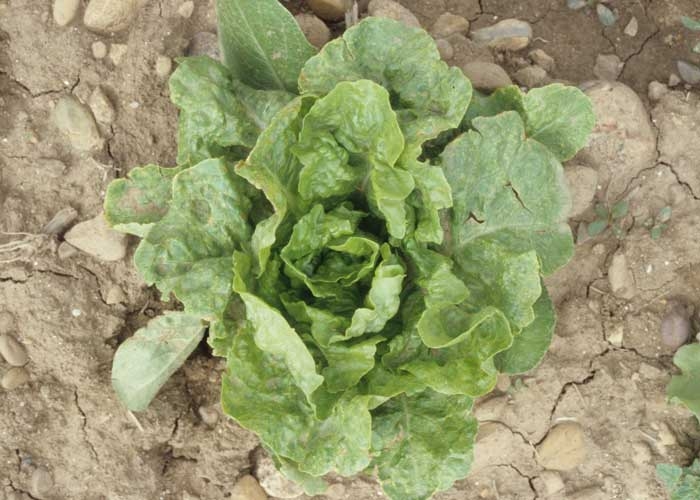 Au champ, où les attaques sont les plus destructives, les laitues apparaissent rabougries et parfois fortement nécrosées. Les feuilles sont plus étroites, légèrement enroulées ou distordues (figure 1). Les jeunes feuilles montrent de temps à autres des altérations nécrotiques, plus ou moins limitées et situées à proximité ou non des nervures (figure 2). On peut aussi observer des anneaux. Des taches chlorotiques sont visibles sur certains étages foliaires (figure 3). De fines nécroses apparaissent parfois, conférant au limbe un aspect légèrement "bronzé". La sévérité des symptômes est d'autant plus grande que le stade de l'infection a été précoce. On peut également constater des éclaircissements nervaires, une mosaïque plus ou moins marquée (figure 4), des taches nécrotiques...