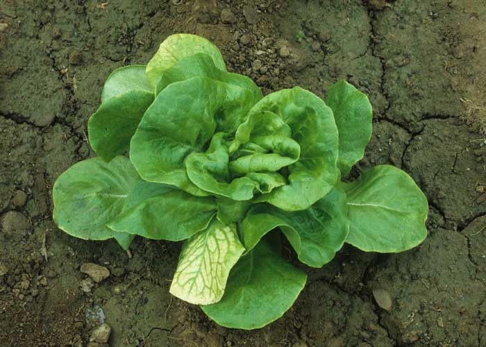 Sur les salades produites en automne et en hiver, on observe une jaunisse internervaire qui est quasiment identique à celle provoquée par le virus de la pseudo-jaunisse de la betterave (Beet pseudo-yellows virus, BPYV). Ce symptôme apparaît d'abord sur quelques feuilles basses. Il est à noter que seule, la partie du limbe exposée à la lumière, présente cette décoloration et que les nervures restent vertes (figure 1). Par la suite, le jaunissement gagne l'ensemble des feuilles de la jupe et quelques feuilles intermédiaires (figure 2). Les vieilles feuilles s'épaississent légèrement et deviennent cassantes quand on les pince. Les feuilles plus jeunes ne montrent aucun symptôme (figure 3).