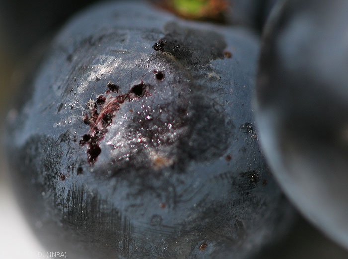 D'autres insectes ravageurs secondaires peuvent profiter des blessures de la baie pour s'installer. C'est le cas des drosophiles qui pondent dans les blessures et initient l'installation de la pourriture acide.