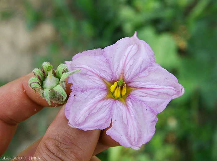 - Les sépales, dont les nervures prennent une coloration violacée, restent complètement joints et le calice est hypertrophié (big bud) (figure 3) ;