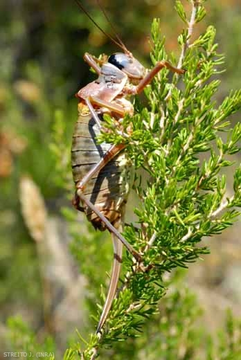 Les caelifères (ex. criquets) sont diurnes et consomment prioritairement des Poaceae (graminées). Lors de la ponte l'abdomen pénètre presque entièrement dans le sol ; les oeufs sont enfouis en groupes dans le sol, enrobés ou surmontés de matière spumeuse. Les ensifères sont plutôt nocturnes et leurs oeufs sont souvent déposés isolement dans les plantes.