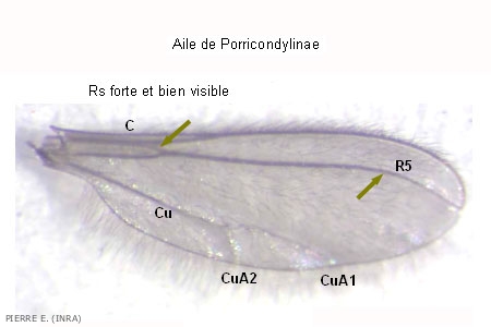 - Rs aussi épaisse que les autres nervures, Porricondylinae (figure 3)