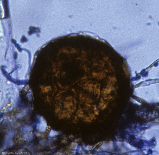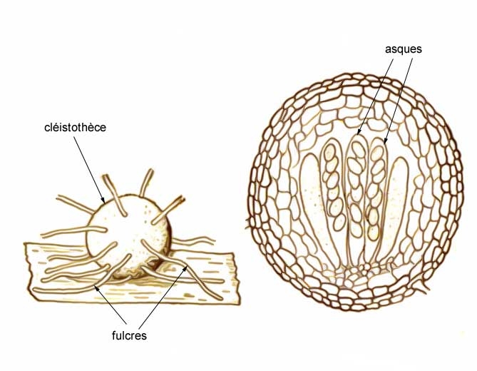 Les formes de conservation de Podosphaera xanthi et Golovinomyces cichoracearum sont encore plutôt mal connues. Certains auteurs ont incriminé leurs cléistothèces (périthèces peu élaborés et sans ostiole assurant leur reproduction sexuée et à l'origine de leur variabilité génétique) (figures 1 à 3), mais leur capacité à pérenniser la maladie d'une année à l'autre n'a pas encore été démontrée clairement. De plus, n'oublions pas que ces structures ne sont que très rarement observées sur le terrain, ce qui tend à infirmer cette hypothèse.