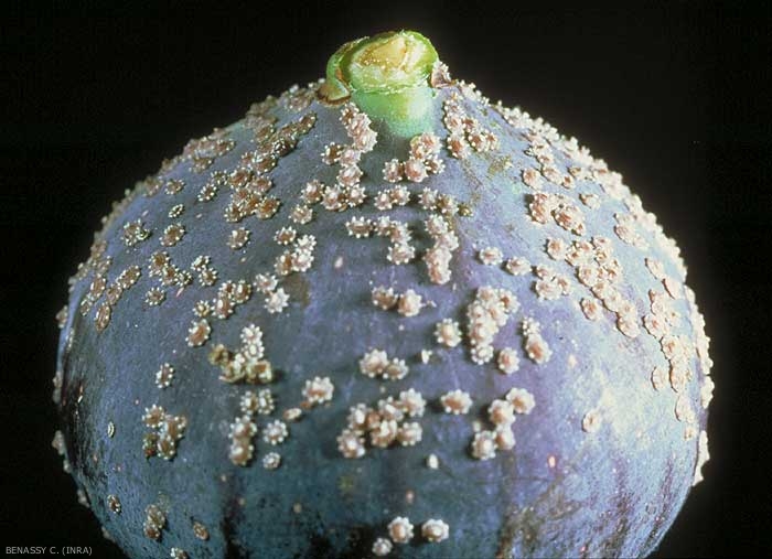 Les larves mobiles se répandent sur tout l'arbre et, au bout d'une semaine, ont colonisé les nervures des feuilles. Les larves du 2ème stade, qui se fixent sur les pousses de figuier, y demeurent jusqu'au printemps suivant, après avoir hiverné.