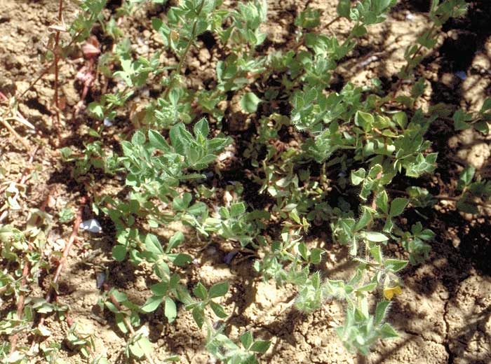 Feuilles à 3 folioles terminales et 2 folioles en position de stipule. Feuilles supérieures à 3 folioles aiguës au sommet tandis que celles des feuilles inférieures sont terminées par un bord arrondi ;