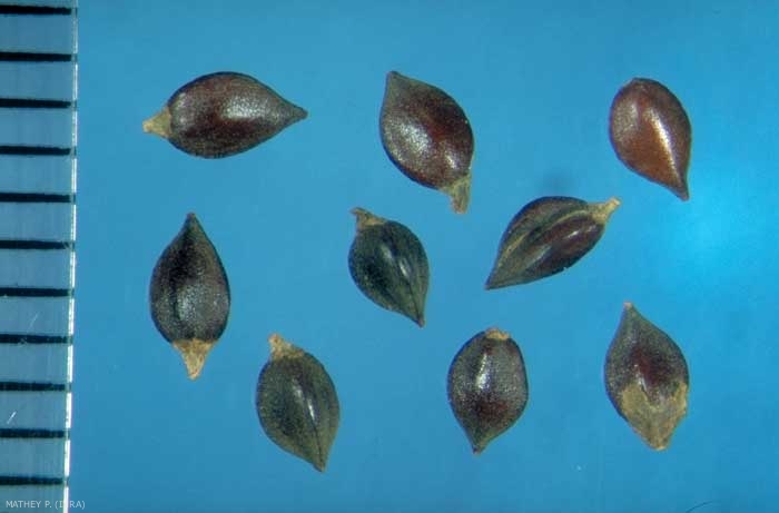 Forme : fruits trigonaux et lenticulaires en mélange ;