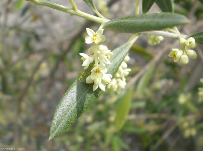 La floraison a lieu en mai-juin (figure 1). Les fruits (olives, figure 2) sont des drupes ovoïdes, dont la pulpe verte ou noire est comestible, et qui sont utilisées comme condiment ou pour la production d'huile alimentaire. Les olives condiments sont cueillies à l'automne et laissées à macérer dans de l'eau salée. Les olives destinées à la production d'huile sont récoltées en décembre.
