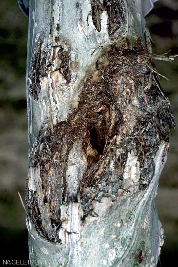 - Boursouflures provoquées par la déformation de l'écorce suite à l'activité larvaire