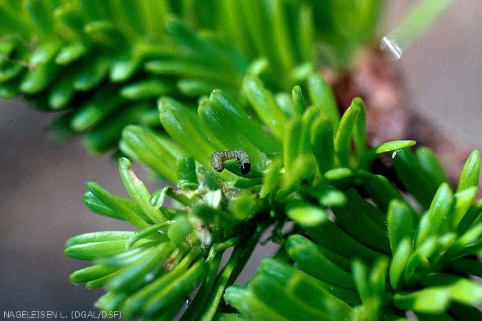 - Affaiblissement des sujets d'autant plus grand que les attaques sont répétées. Une succession exceptionnelle de 5 à 6 années de défoliation peut alors provoquer la défoliaiton quasi totale des sapins