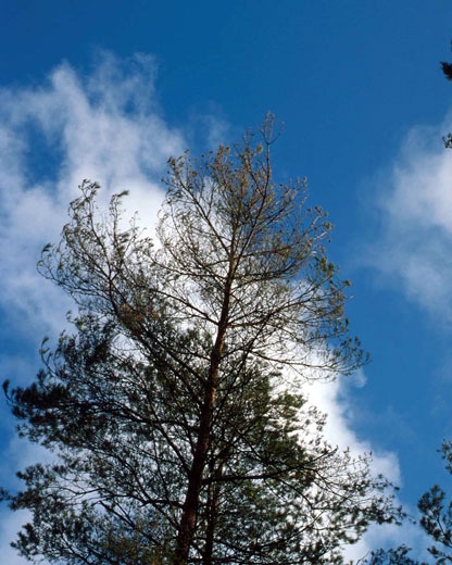 - Défoliation au printemps avec présence d'un fouet d'aiguilles de l'année à l'extrémité des rameaux (consommation uniquement de la pousse n - 1). En été, toutes les aiguilles sont consommées.