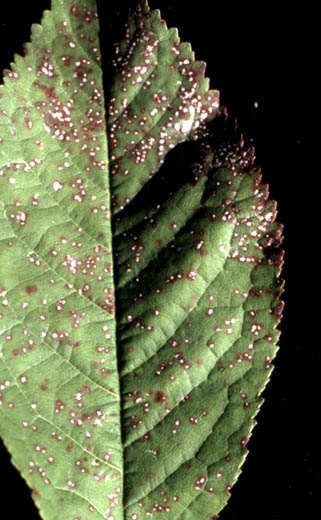 - Apparition à partir de fin mai début juin de petites taches (1 à 2 mm), plus ou moins anguleuses :