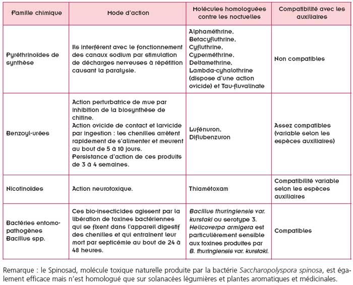 Pour lutter contre les noctuelles défoliatrices, différentes substances actives sont autorisées en France en cultures florales et en traitements généraux (voir Figure1).