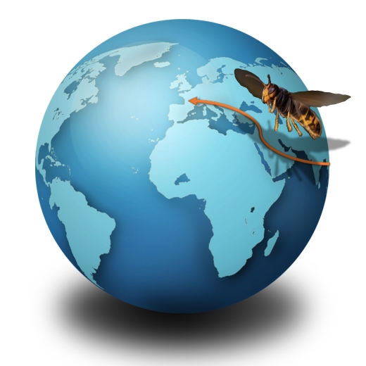 En Asie, dans son aire d’origine (figure 1), ce frelon est surtout connu comme étant un prédateur important de l’abeille domestique asiatique : Apis cerana. Cette espèce se défend efficacement et manifeste différents comportements de défense, dont le « heat-balling » qui consiste à former une grappe d’abeilles autour du frelon pour faire monter la température et le tuer (ces abeilles ayant un seuil de tolérance thermique plus élevé que le frelon).