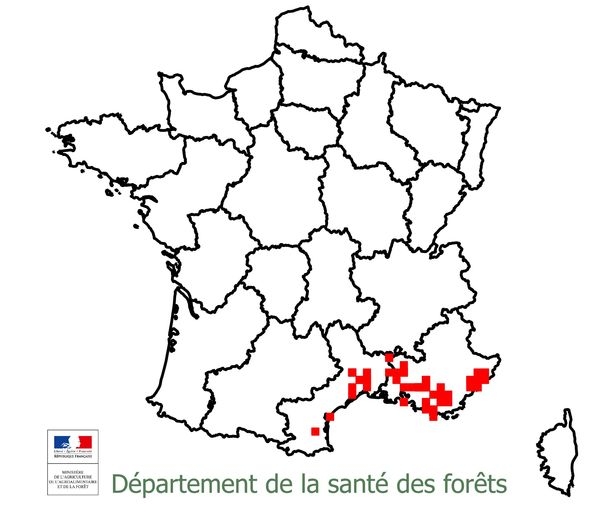 - Le développement de ces chancres entraîne le dessèchement progressif des rameaux affectés dont les aiguilles roussissent par bouquets.