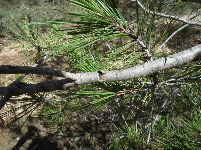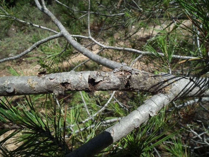- La bactériose du pin d'Alep due à Corynebacterium halepensis est caractérisée par des excroissances globuleuses implantées latéralement sur des rameaux, d'abord très petites, qui grossissent peu à peu et bloquent la circulation de la sève, provoquant le dessèchement des pousses terminales.