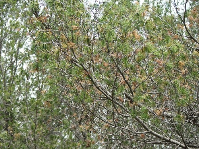 - La défoliation liée à cette maladie ne doit pas être confondue avec la chute naturelle des aiguilles les plus anciennes localisées à la base des rameaux.