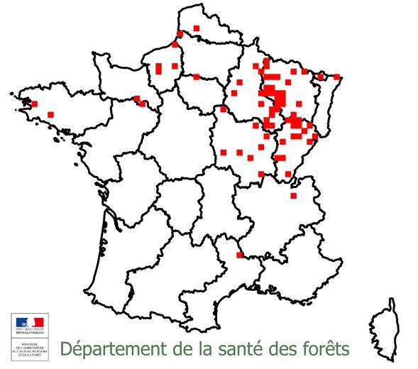 Le symptôme d'écoulement noirâtre n'est pas spécifique à ce pathogène et il faut vérifier la présence de fructifications caractéristiques et l'absence d'autres dégâts (galeries sous-corticales).