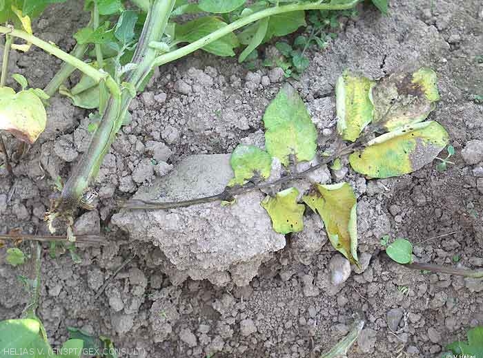 Alors que les conditions humides entraînent préférentiellement la manifestation de pourritures, des conditions chaudes et sèches favorisent le développement de flétrissements.