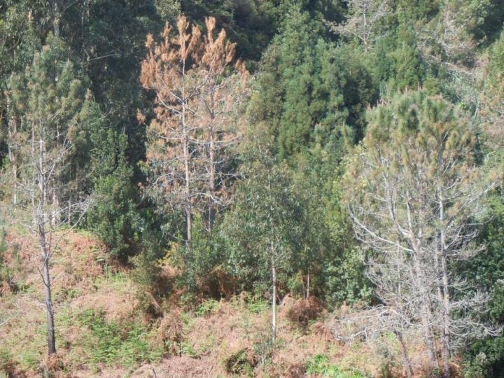 Le nématode du pin peut conduire à l’apparition de symptômes sévères, allant jusqu’au flétrissement généralisé des arbres puis leur mort.