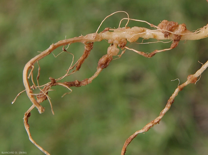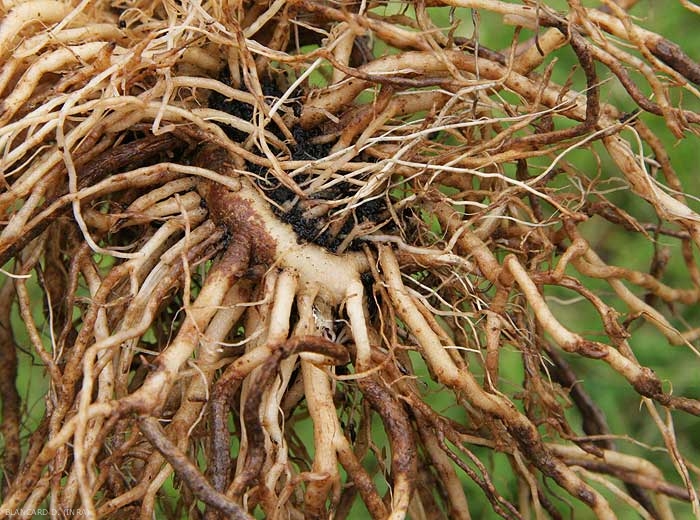 Le système racinaire des plantes malades est un organe quelque peu négligé par les observateurs en quête d’un diagnostic fiable. Soit ils omettent de le regarder, soit ils ne se mettent pas toujours en situation optimale pour apprécier son état sanitaire réel. Ne jamais oublier de l'observer, en particulier si un flétrissement foliaire (accompagné ou non d'un jaunissement), un dessèchement, voire un blocage du développement des plantes sont constatés.