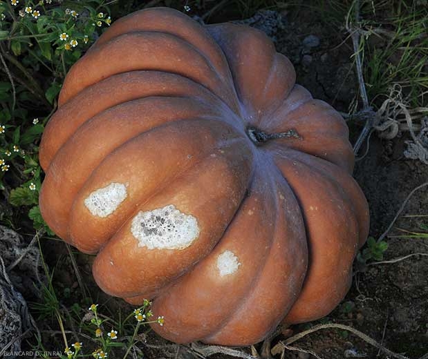 - seules les parties des fruits et des feuilles les plus exposées aux rayonnements solaires sont touchées ;