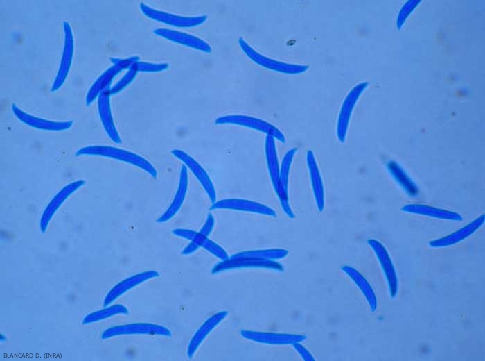 - Conseils : au laboratoire, l'observation des conidies présentes sur les tissus végétaux altérés ne pose normalement pas de problème. Repérées grâce à la loupe binoculaire, elles peuvent être détaillées après préparation microscopique entre lame et lamelle et observation au microscope photonique. Si elles sont absentes, placer les échantillons dans une chambre humide et réaliser des observations à intervalles réguliers.