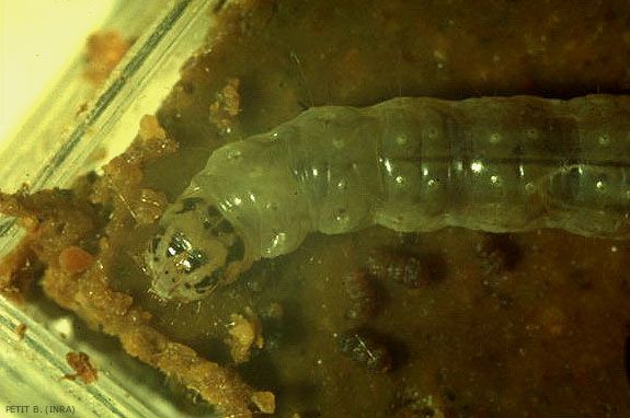 La reprise d’activité s’effectue aux stades C3-D du pommier. La chenille (figure 2) s’installe dans les bourgeons où elle termine son évolution larvaire en se nourrissant des organes foliaires ou floraux.