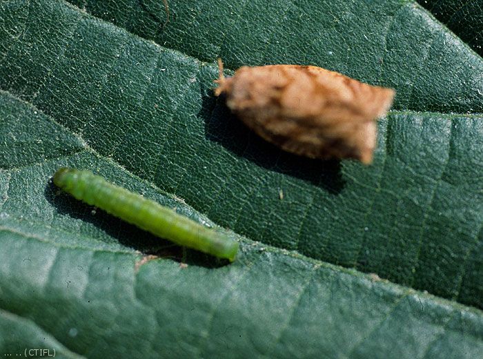 Les jeunes larves rongent l’épiderme des feuilles et des pousses terminales, en respectant les nervures (figure 3), et mordillent l’épiderme des fruits.