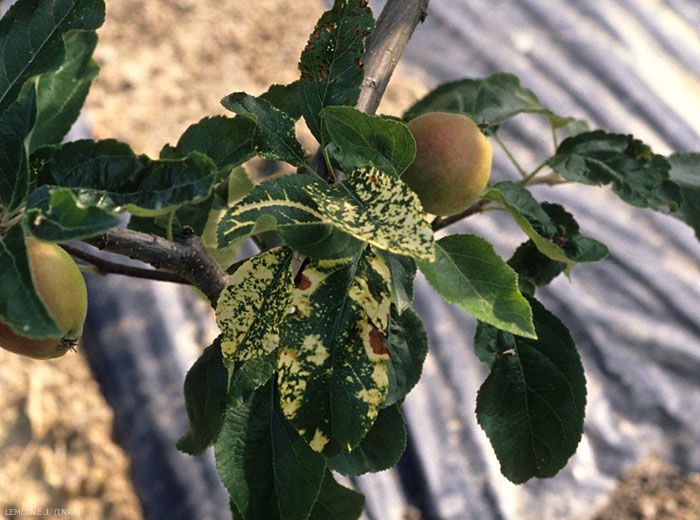 La mosaïque du pommier est assez facilement identifiable sur le feuillage de nombreuses variétés, en pépinière et en verger, au printemps, particulièrement sur les cultivars sensibles tels que Golden Delicious, Gala, Jonathan,… et leurs mutants ou hybrides.