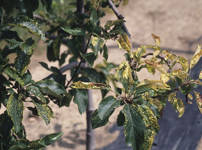 Une maladie voisine, très nécrotique, ou une souche sévère d’ApMV, la " tulare apple mosaic", a été signalée dans une vallée californienne.
