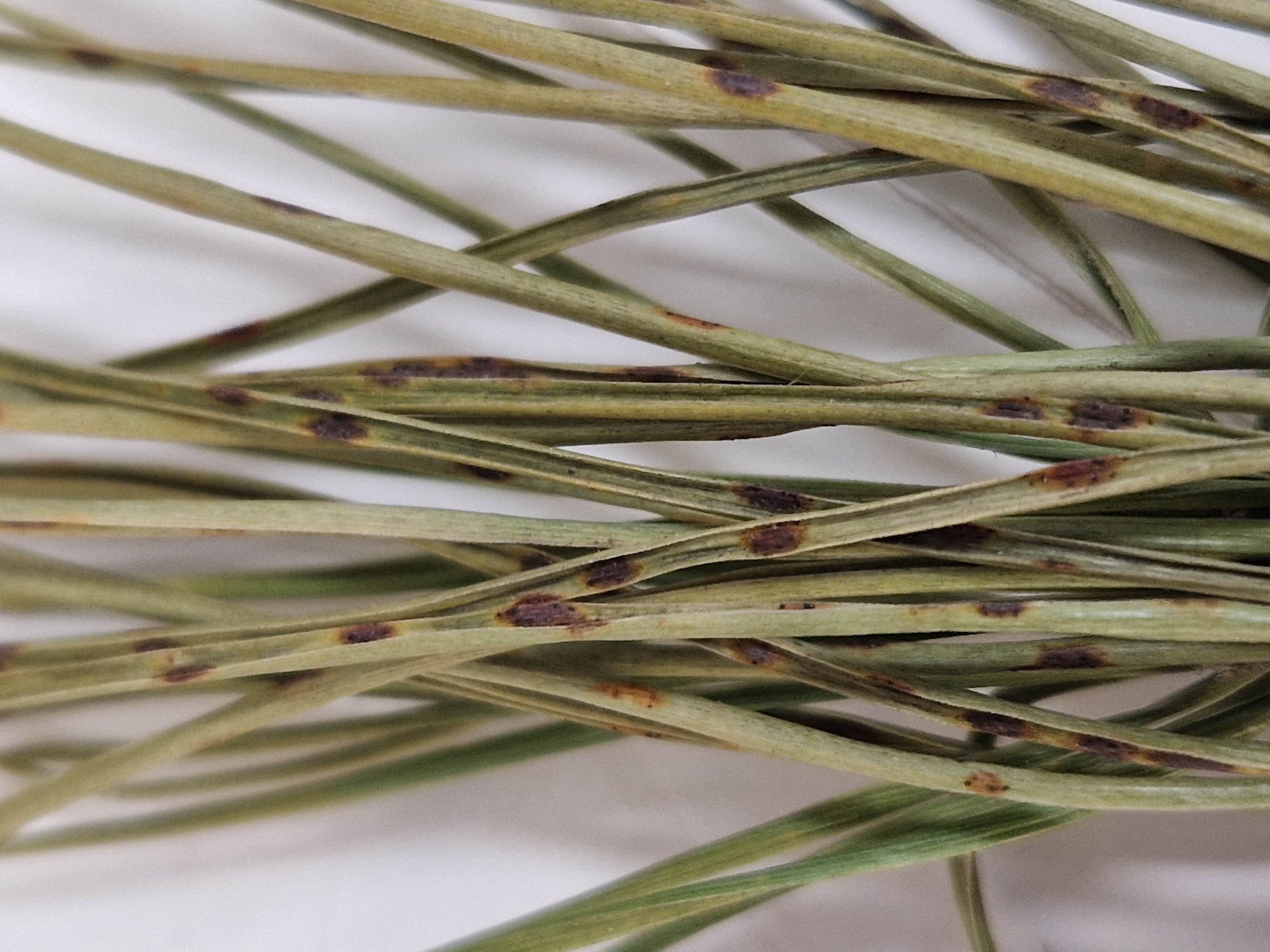 - en situation d'épidémie, les aiguilles de 1 an ou 2 ans (selon les espèces de pins) tombent au printemps.