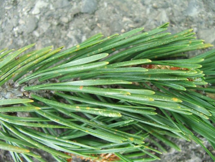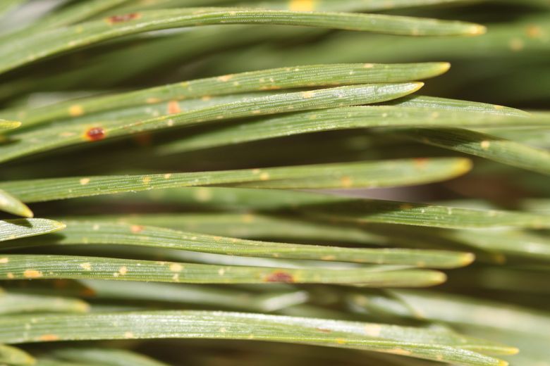 - En ce qui concerne les conifères, les symptômes d’ozone s’expriment sur les aiguilles de deux manières, par des petites taches jaune à vert clair, des marbrures à contour diffus, en particulier sur la face supérieure et à la pointe des aiguilles ou par une décoloration spécifique des aiguilles sur les faces exposées à la lumière.