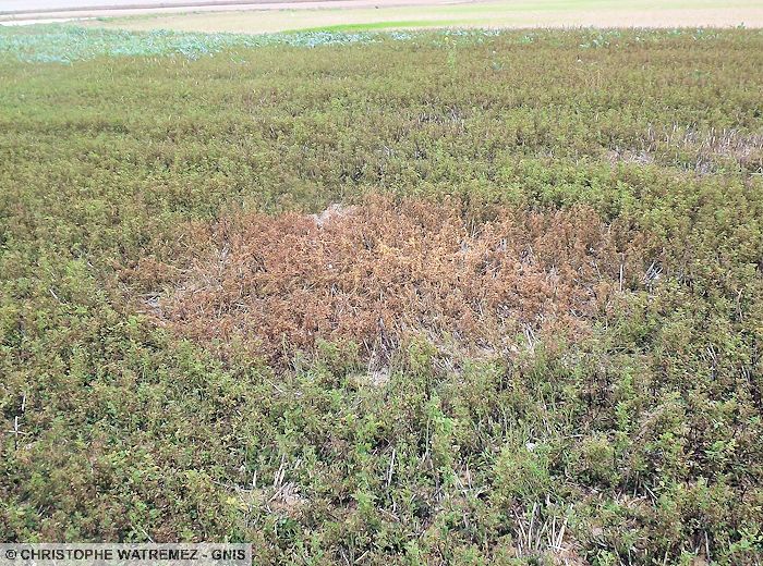 Organisme non transmissible par les semences. Mais peut être disséminé par les semences.