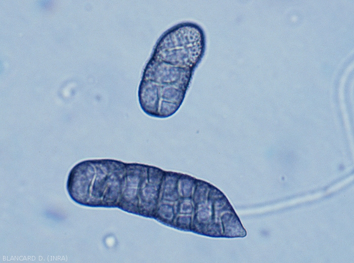 Dissémination : par les conidies surtout par le vent, les courants d'air, mais aussi par les éclaboussures d'eau consécutives aux pluies ou aux irrigations par aspersion. Rappelons que les plants peuvent transmettre la maladie si des infections ont lieu en pépinière.