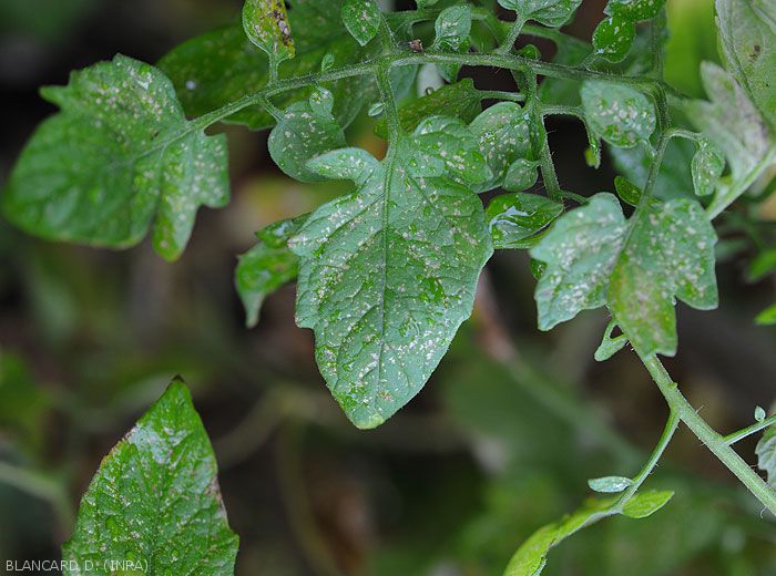 - Les feuilles et les folioles affectées ont tendance à se chloroser et prennent une teinte terne.