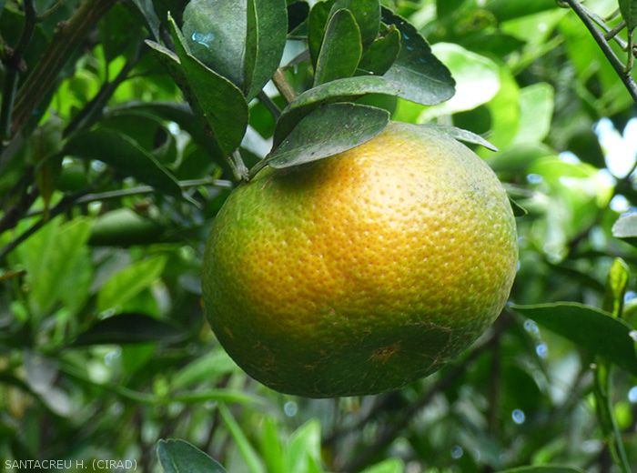 - Présence des psylles vecteurs sur l'arbre, présence de fumagine. Ils sont préférentiellement sur les jeunes pousses, provoquent des invaginations foliaires caractéristiques …