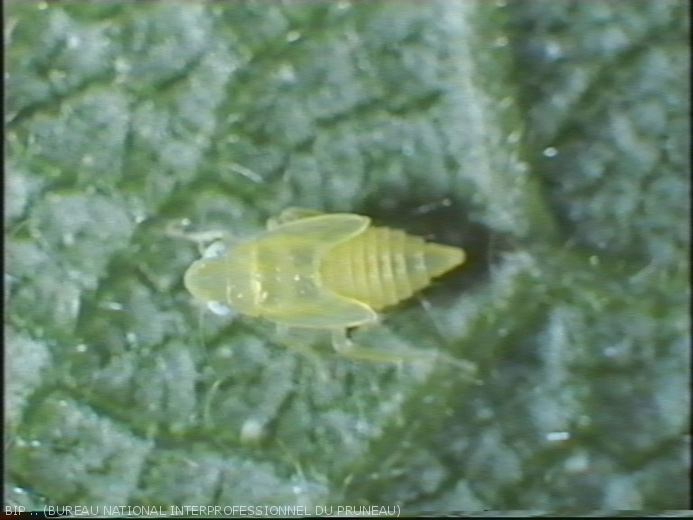 Cette cicadelle migre beaucoup entre parcelles de vigne et/ou leur environnement. Dans le cas du prunier d'Ente, cette cicadelle se positionnera à la face inférieure des feuilles. Elle se nourrira de la sève, en piquant les nervures. A la face supérieure de la feuille, ces piqûres se traduiront par de petites taches blanches, sans impact sur la culture.