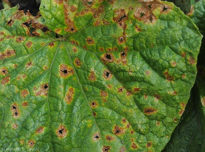 Symptômes d'anthracnose sur concombre