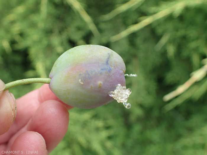 Le carpocapse des prunes (Grapholita funebrana) est le ravageur majeur qui atteint les fruits (figure).