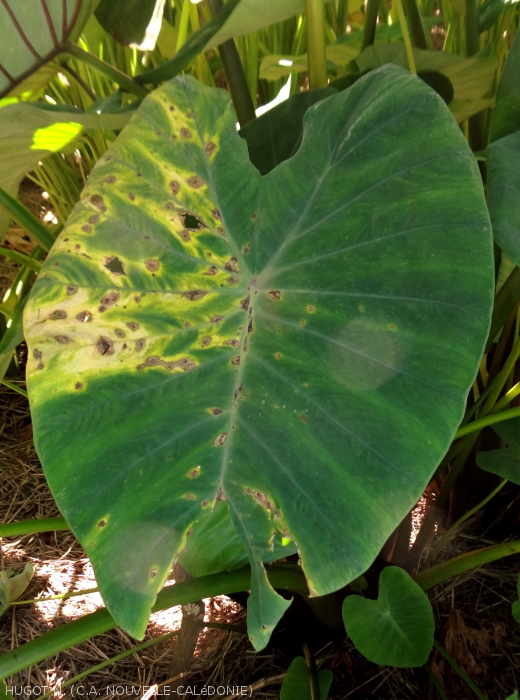 Confusions possibles : mildiou du taro (Phytophthora colocassiae) qui est une maladie absente de Nouvelle-Calédonie, corynesporiose, etc.