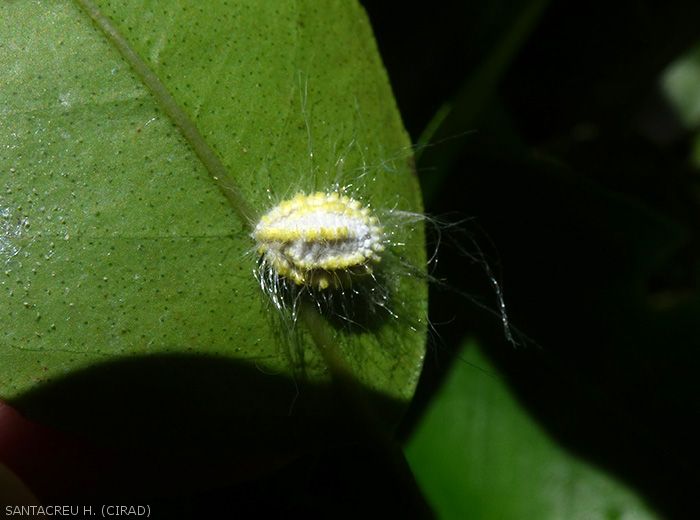 Les larves se déplacent sur les pousses, les feuilles et les fruits.
