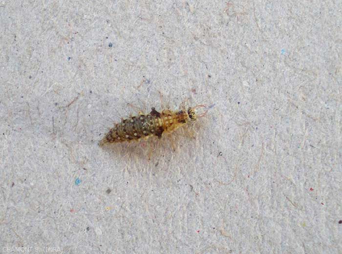 • Les oeufs de la cicadelle bison peuvent être parasités par un micro-hyménoptère chalcidien de la famille des Mymaridae, Polynema striaticorne Girault 1911. Les chrysopes (figure 1) et les punaises prédatrices (figure 2) se nourrissent des larves.